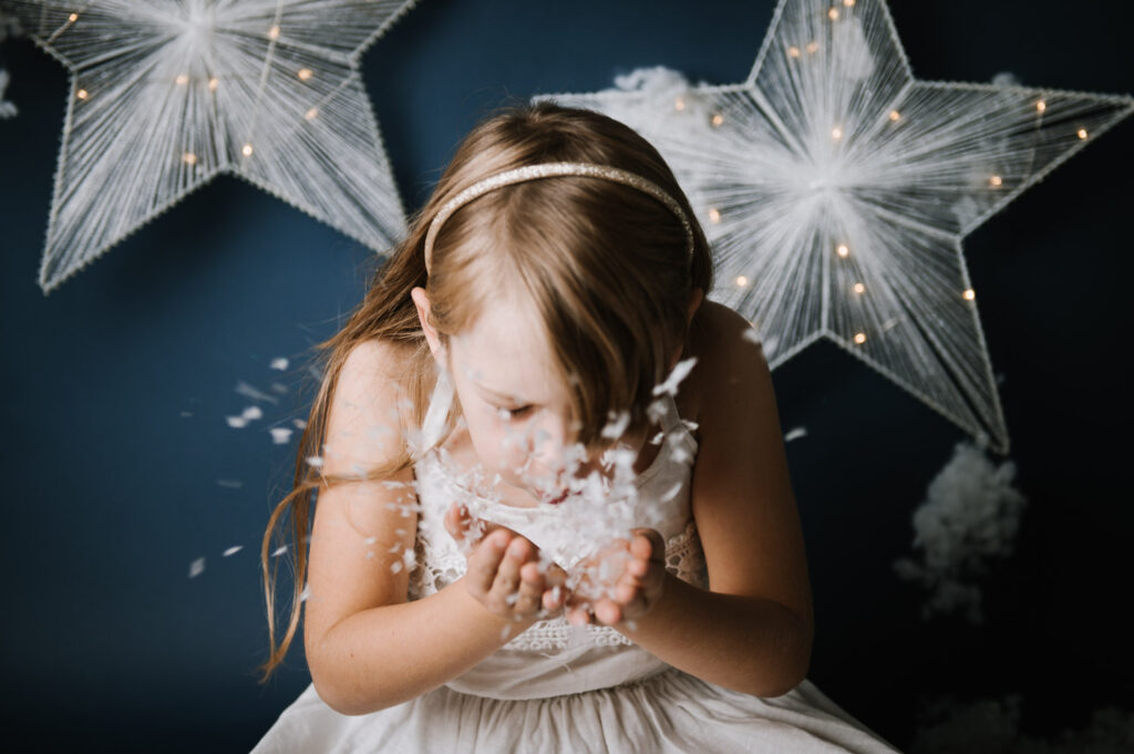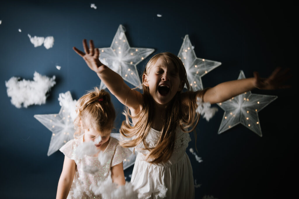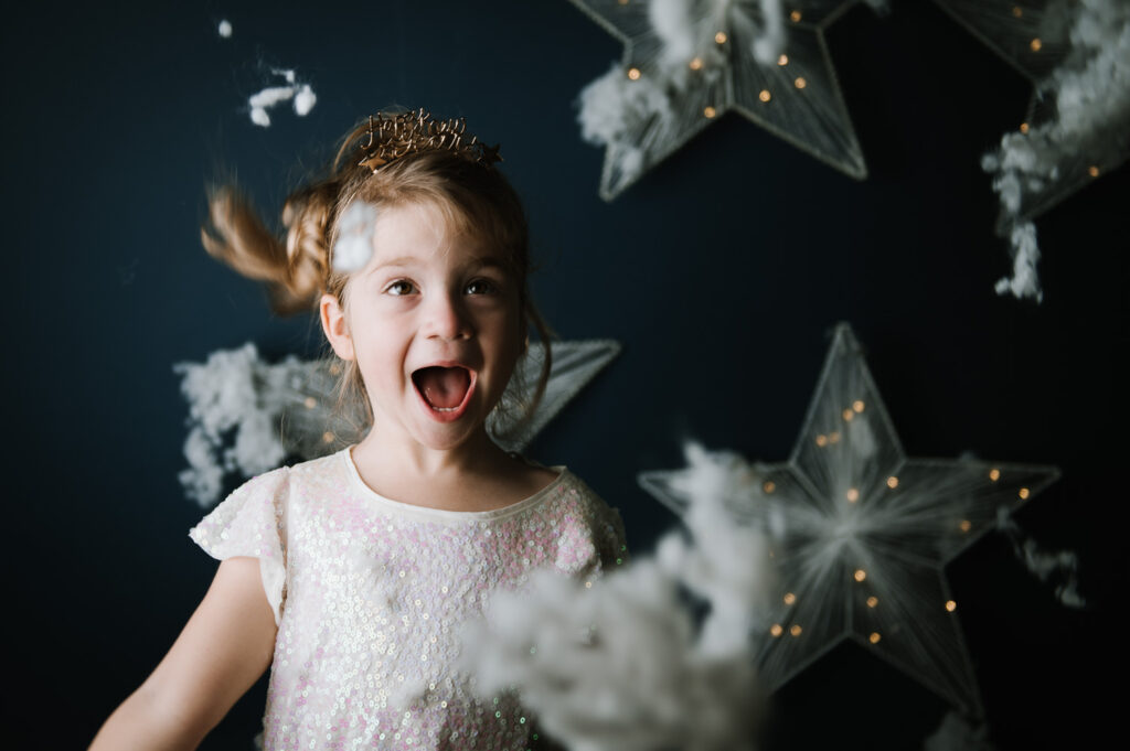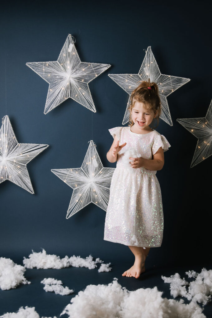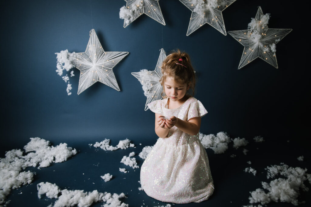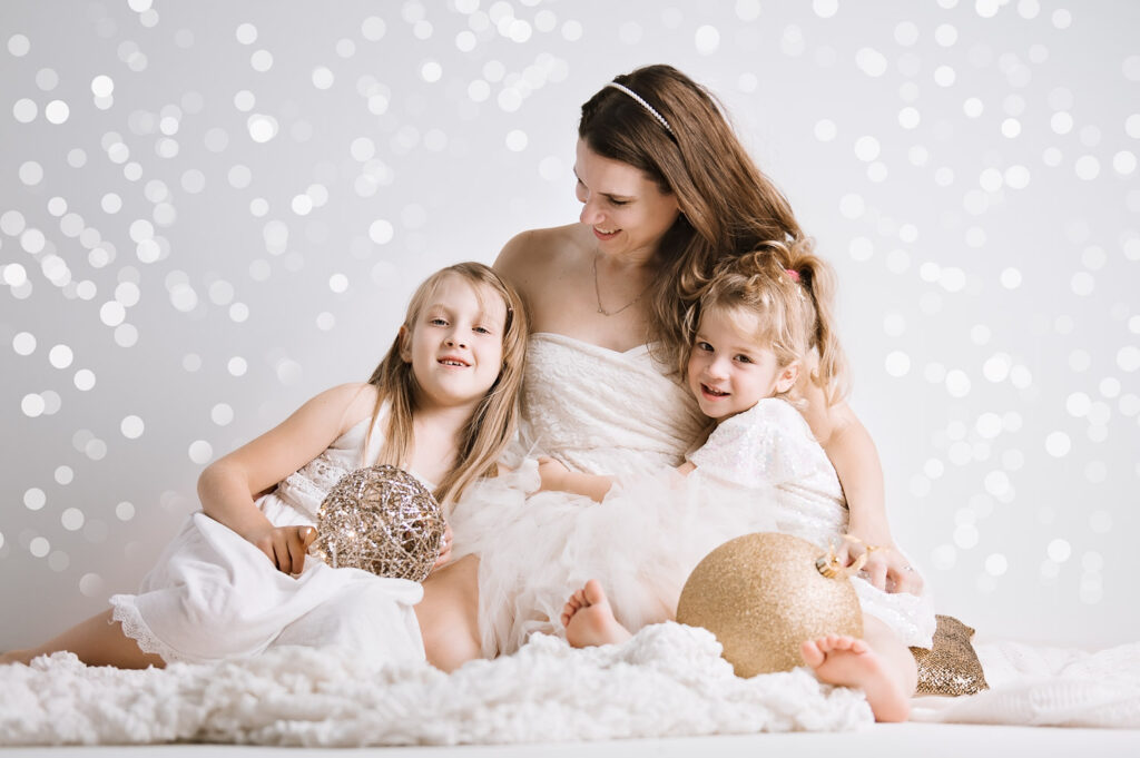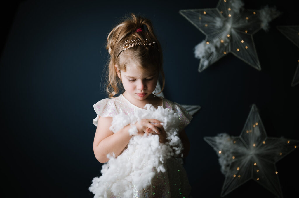 Takoj, ko sem poleti naredila prve fotke v studiu, sem že začela z brainstormanjem idej, kako izpeljati praznično fotografiranje. Takoj sem vedela, da bosta dve, da bomo zadostili vsem okusom – ena malo bolj ‘klasična’, druga pa malo drugačna, bolj zabavna in igriva. Vedela sem tudi, da nobena ne bo preveč kičasta, ker že od vsega začetka svojega ustvarjanja sledim načelu, da mora biti v ospredju portretiranec, ne pa en kup kičastih pripomočkov, ki so sami sebi namen. Sledila je kar dolga faza usklajevanja budžeta, praktičnosti izvedbe in mojih želja in pričakovanj.